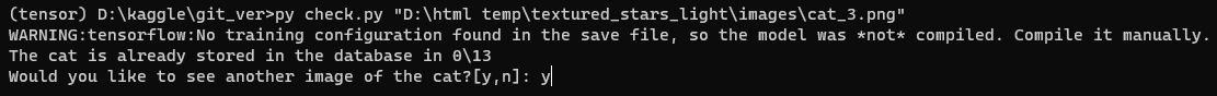 If the model decides that the cat in the input image is one of the cats stored in the database, it will returns the location of the image folder of the cat